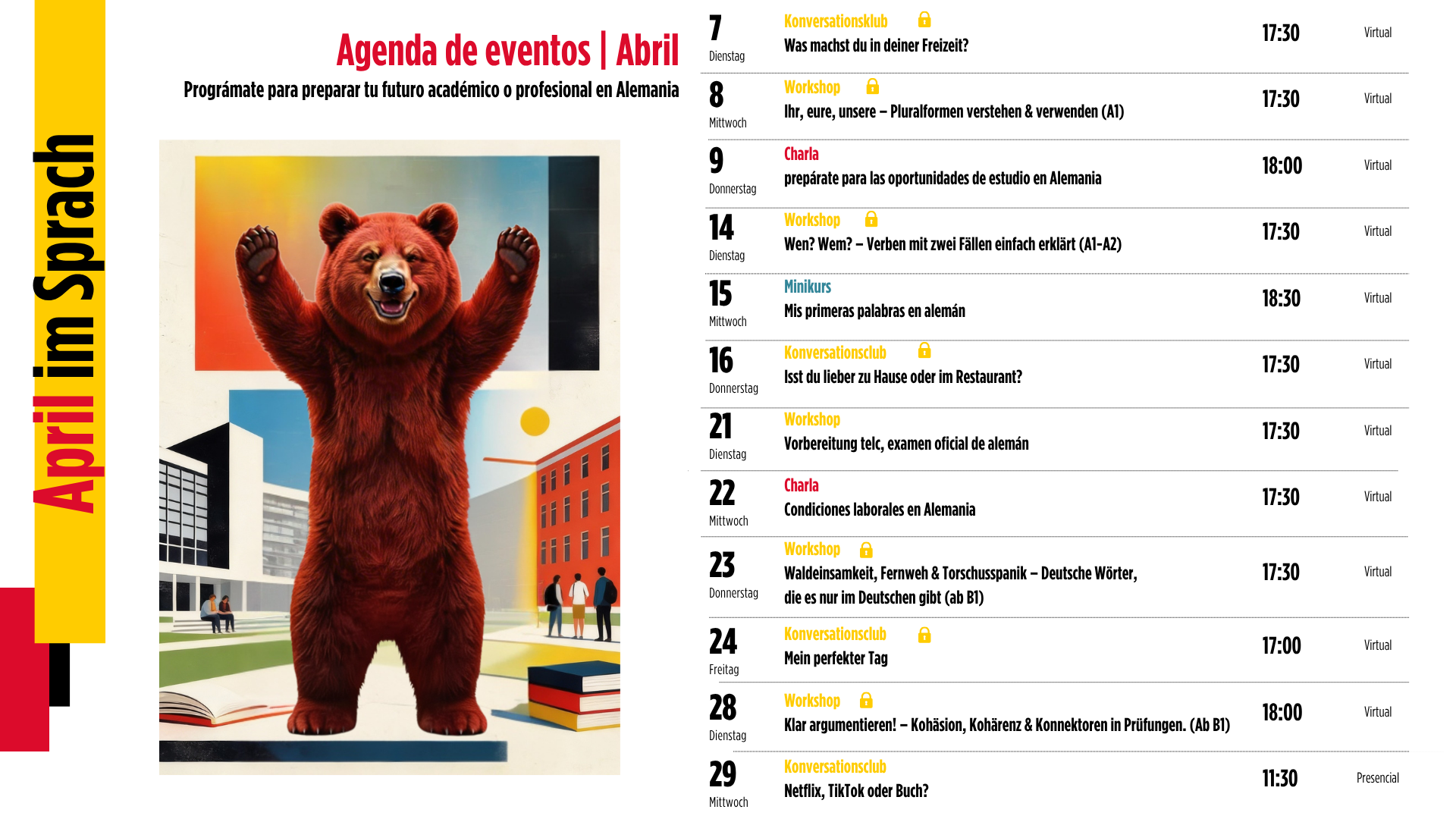 Conoce nuestra agenda del mes, escoge las actividades en las que quieras participar.